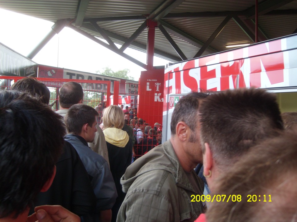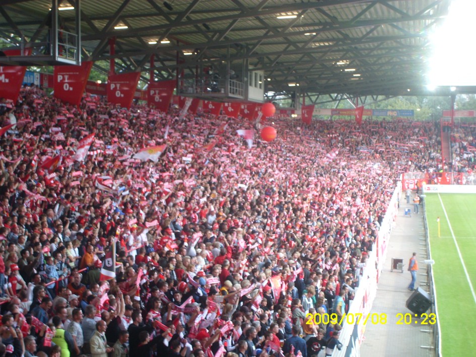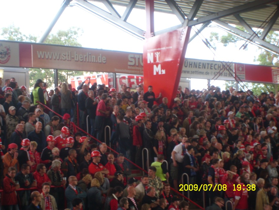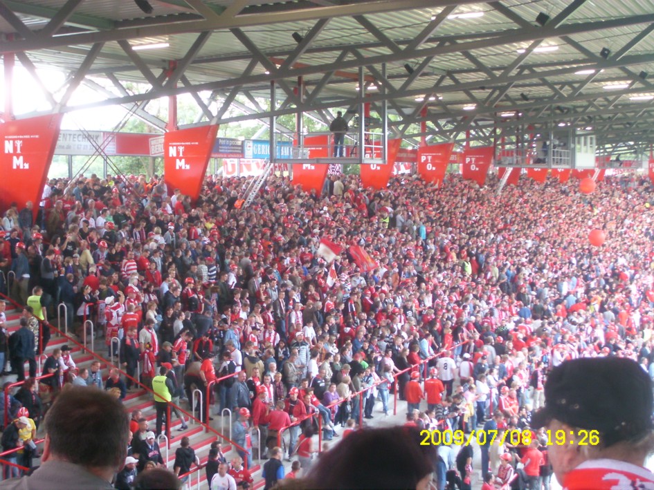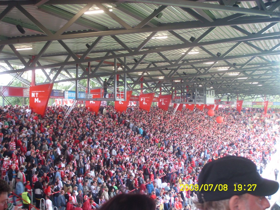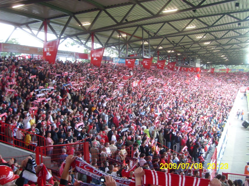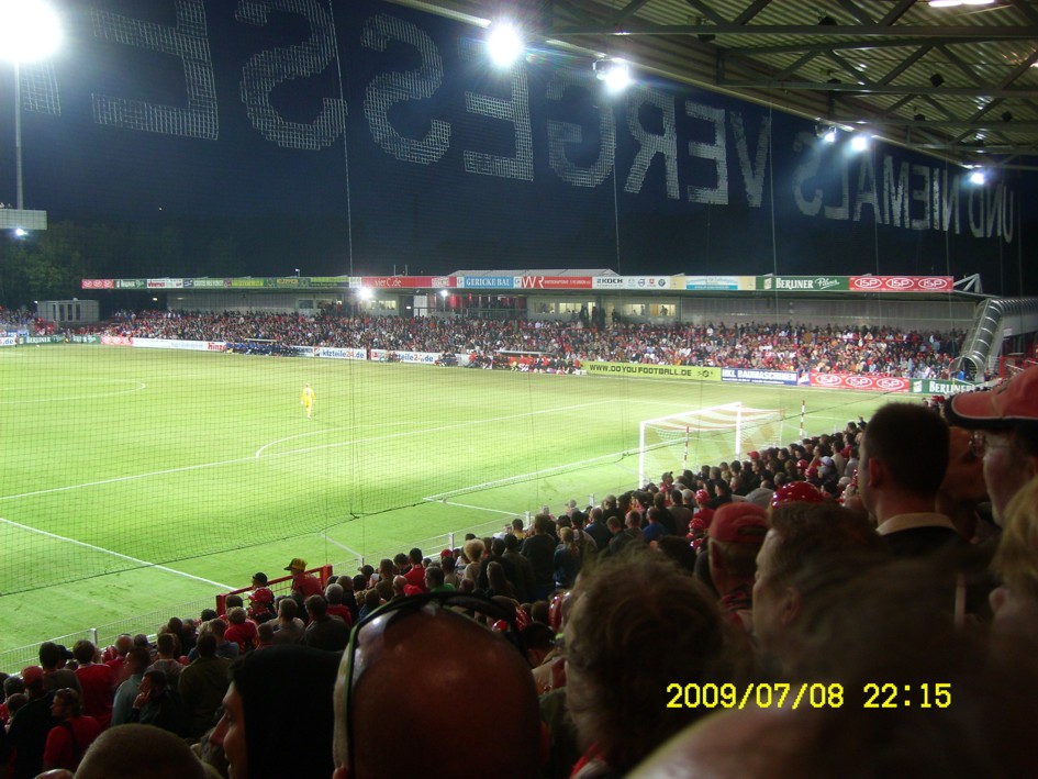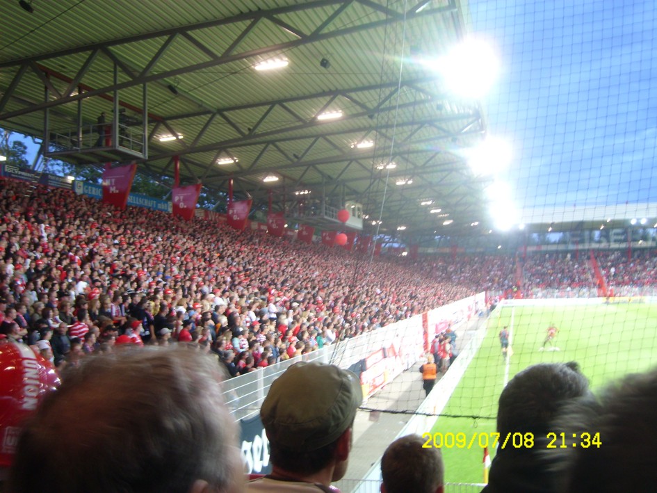 Für uns ist es längst kein Gehimnis mehr, das Spiel fand nicht vor der offiziell ausverkauften Kulisse von 18955 Zuschauern statt. Nein, dieser "Härtetest" für unsere neue Alte Försterei fand vor etwa 20.000 bis gefühlten 22.000 Leutchen statt. Noch nie in meiner Unionhistorie (außer bei einem 8:0 Spiel) habe ich solange nach Getränken angestanden. Aber seht selbst, für einen begrenzten Zeitraum stelle ich hier mein Filmchen ungeschnitten vom Tor in der 90. Minute bis zum Ende der Feierlichkeiten online. Dauer etwa 28 Minuten (!)