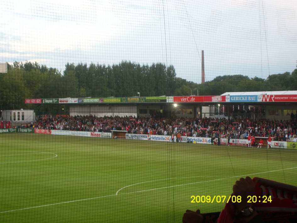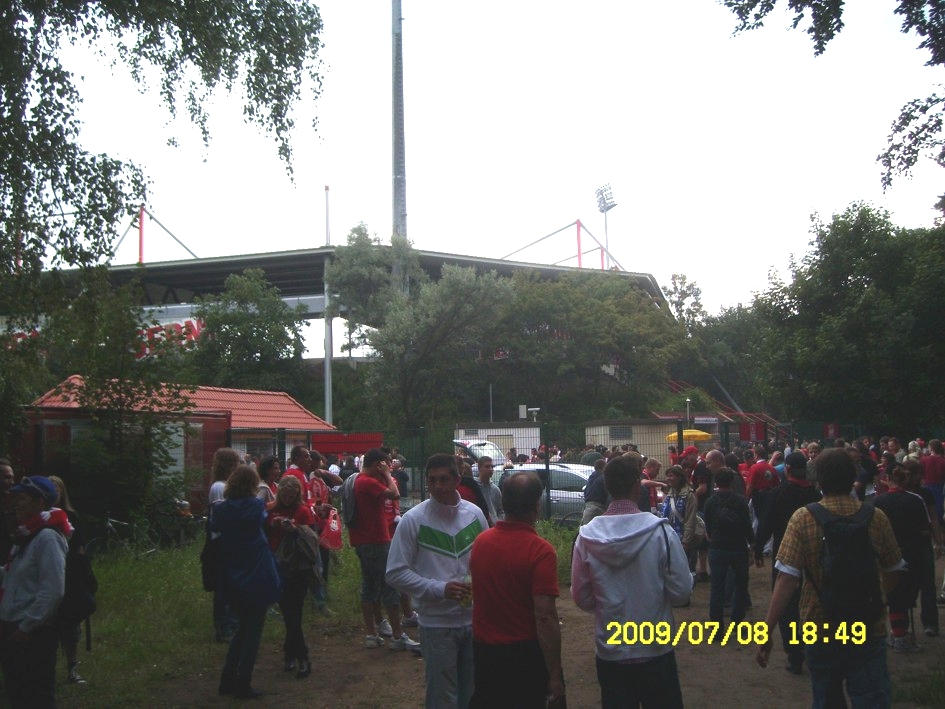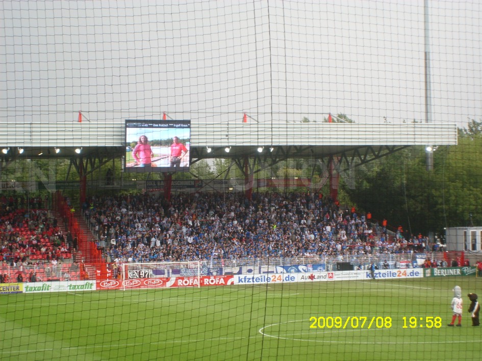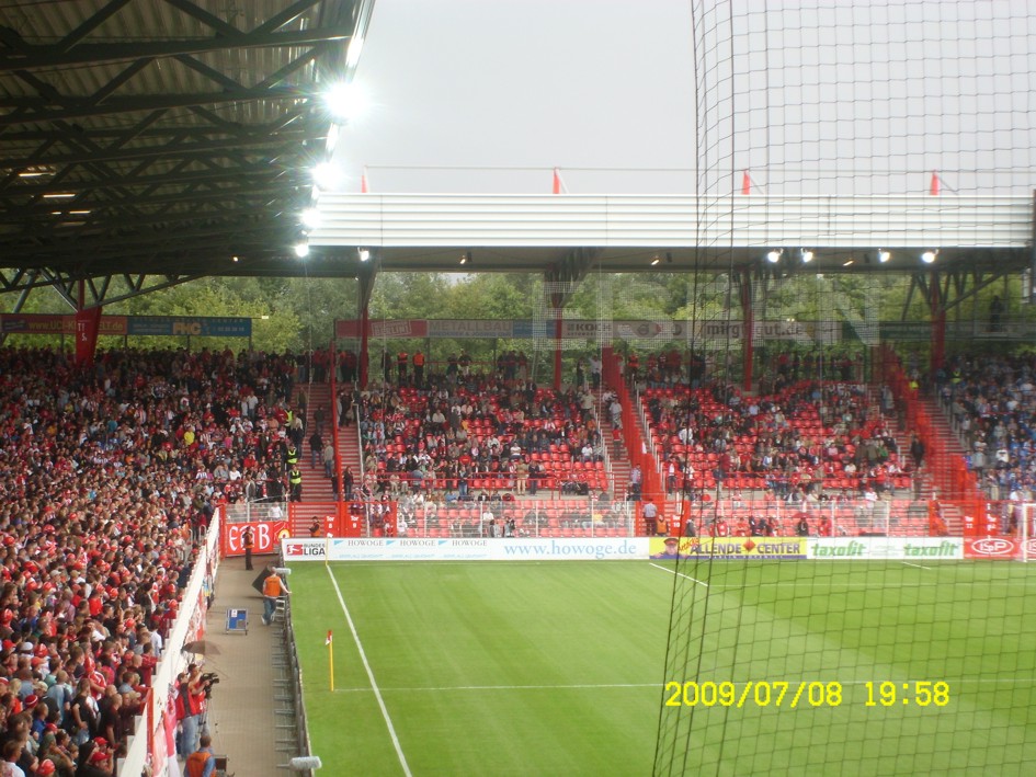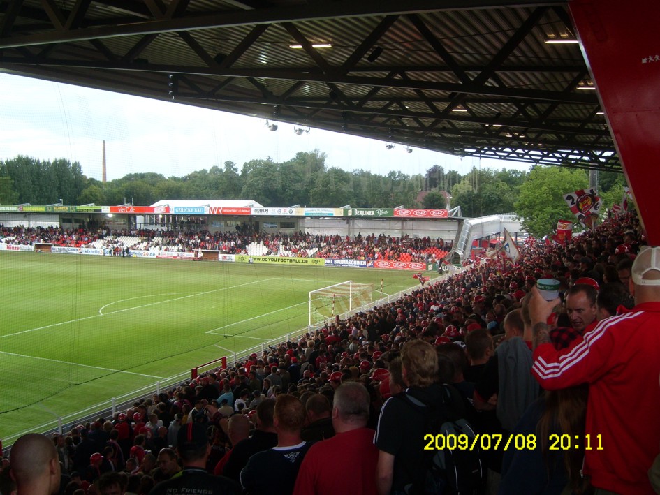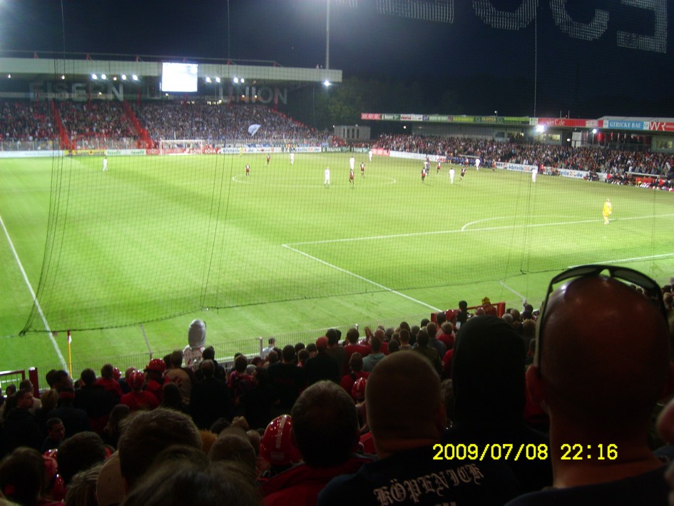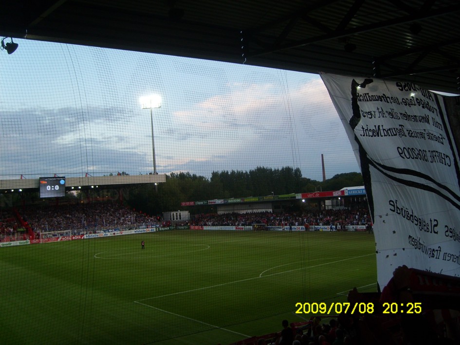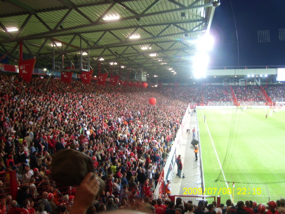 Für uns ist es längst kein Gehimnis mehr, das Spiel fand nicht vor der offiziell ausverkauften Kulisse von 18955 Zuschauern statt. Nein, dieser "Härtetest" für unsere neue Alte Försterei fand vor etwa 20.000 bis gefühlten 22.000 Leutchen statt. Noch nie in meiner Unionhistorie (außer bei einem 8:0 Spiel) habe ich solange nach Getränken angestanden. Aber seht selbst, für einen begrenzten Zeitraum stelle ich hier mein Filmchen ungeschnitten vom Tor in der 90. Minute bis zum Ende der Feierlichkeiten online. Dauer etwa 28 Minuten (!)
