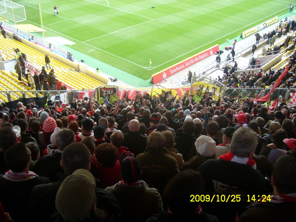 Im Rahmen unserer Belgienreise ging es dann mit der gesamten Reisegruppe am 25. Oktober zum Auswärtsspiel auf den neuen Tivoli in Aachen, wo Union ein einigermaßen überzeugender 4:1 Sieg gelang. Die Belgienbilder gibt es auf einer Sonderseite.